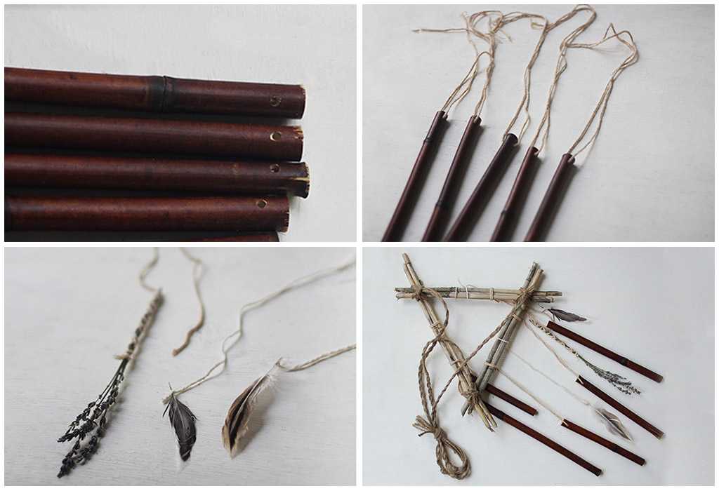 Некоторые предпочитают делать подвеску своими руками. Для этого обыкновенные палочки из бамбука перевязывают красной лентой. Получается превосходный атрибут фен-шуй, несущий положительный поток энергии.