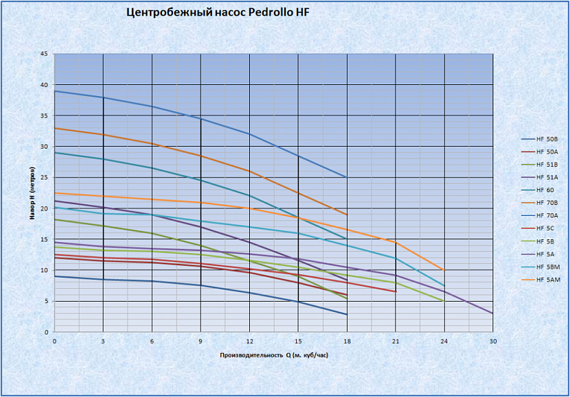 Уровень производительности определяет скорость подачи воды, эта характеристика указывается в таблицах инструкции эксплуатации насоса.