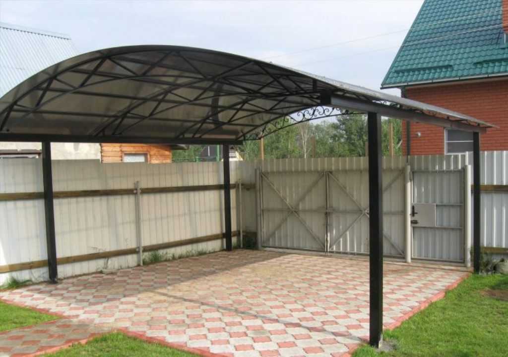 Поликарбонат относится к пластичным, хорошо гнущимся материалам, из него получаются красивые арочные навесы, имеющие безупречную плавную линию кровли. С полукруглой крыши осадки легко стекают вниз, не создавая давление на ее поверхность.