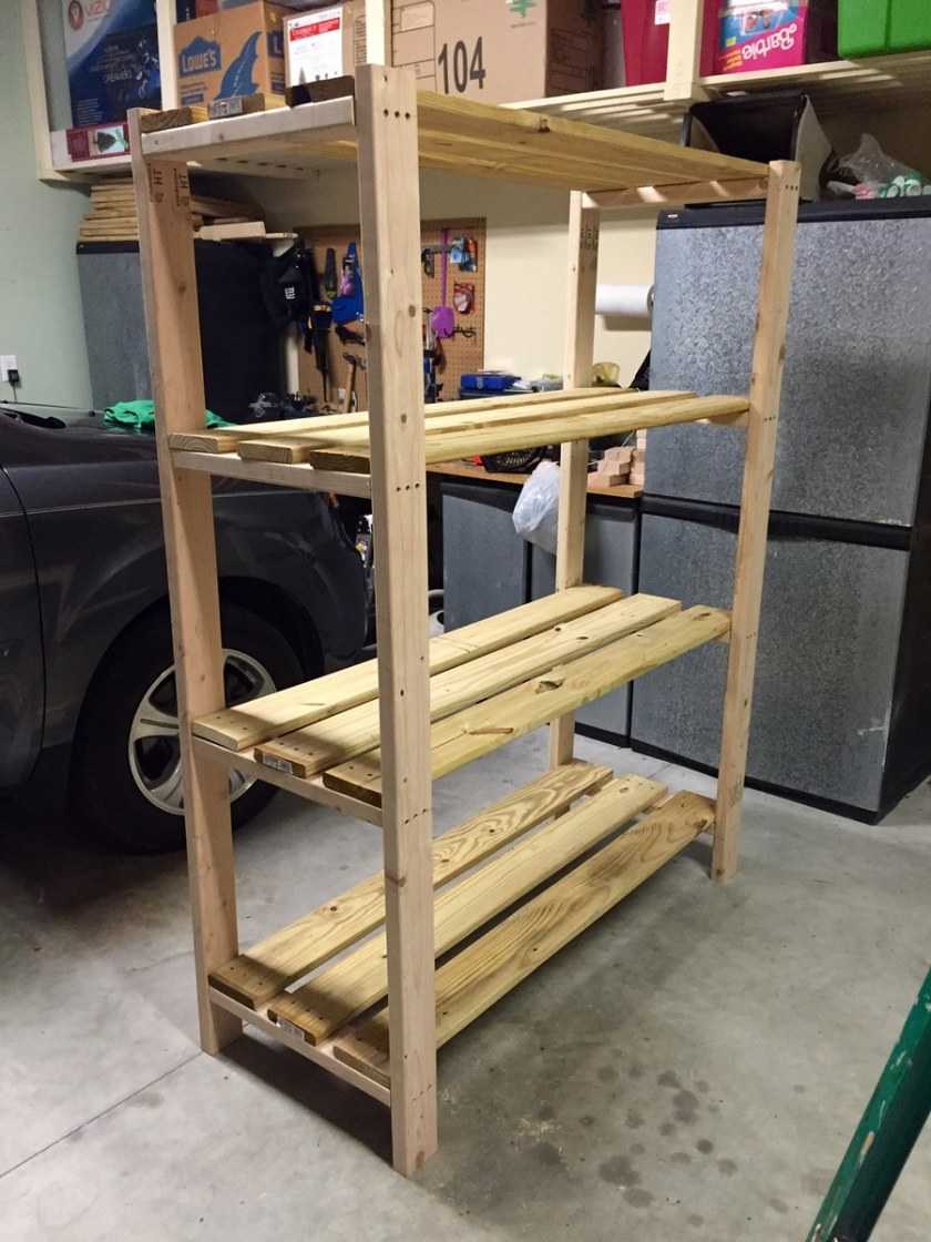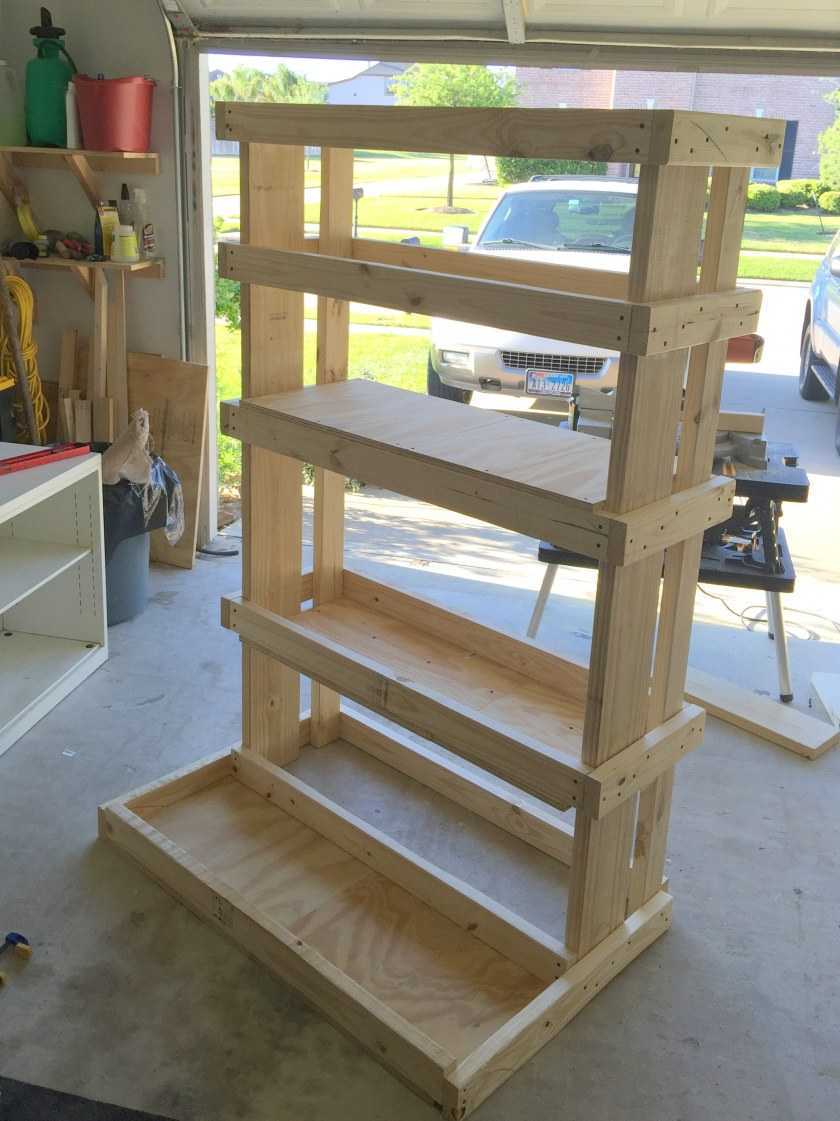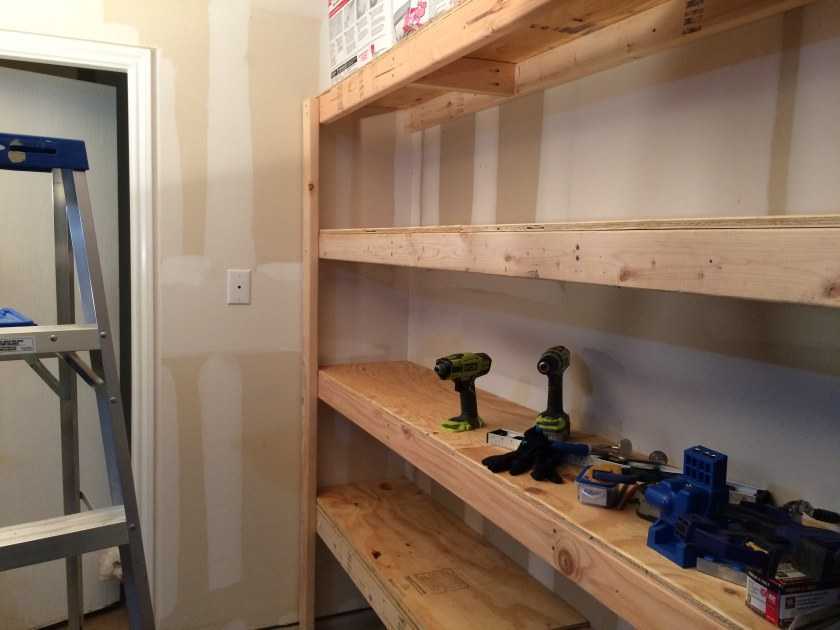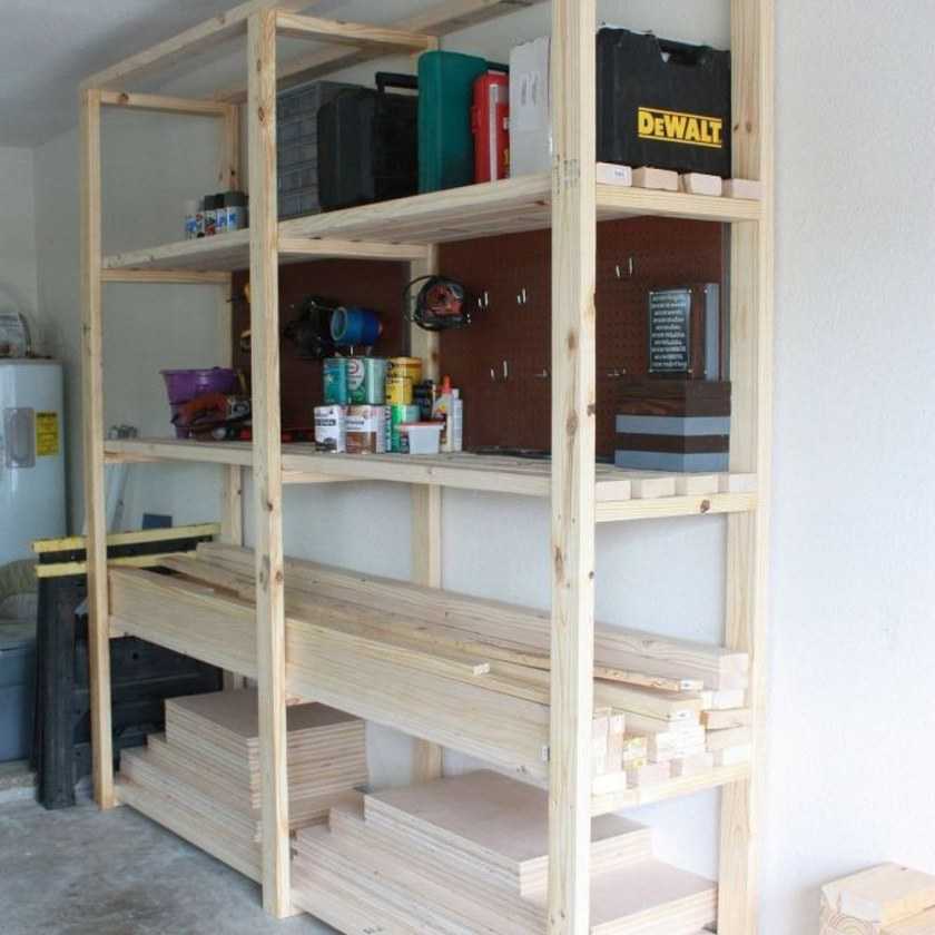 Стеллажи можно приобрести в магазине или смонтировать своими руками. Для второго варианта потребуются: