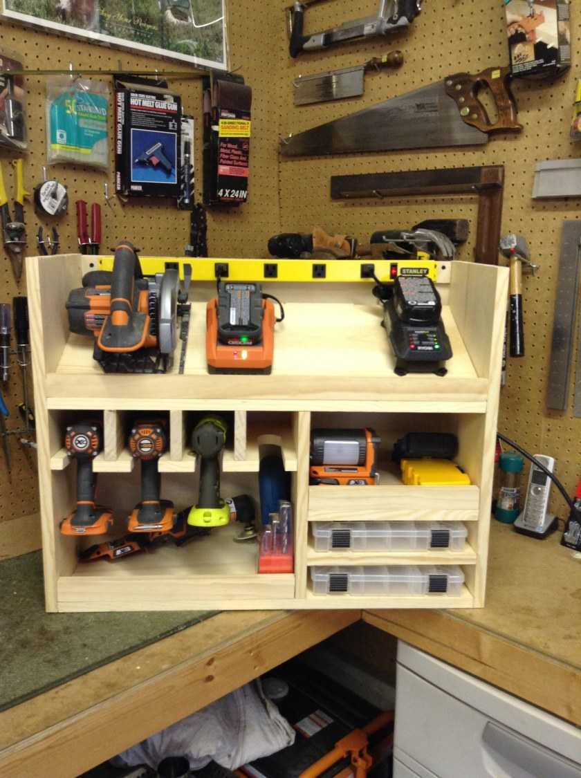 Мастера, знающие, как обустроить рабочее место в гараже, уверяют, что кроме полок для хранения насадок для оборудования, понадобятся, как минимум, следующие инструменты: