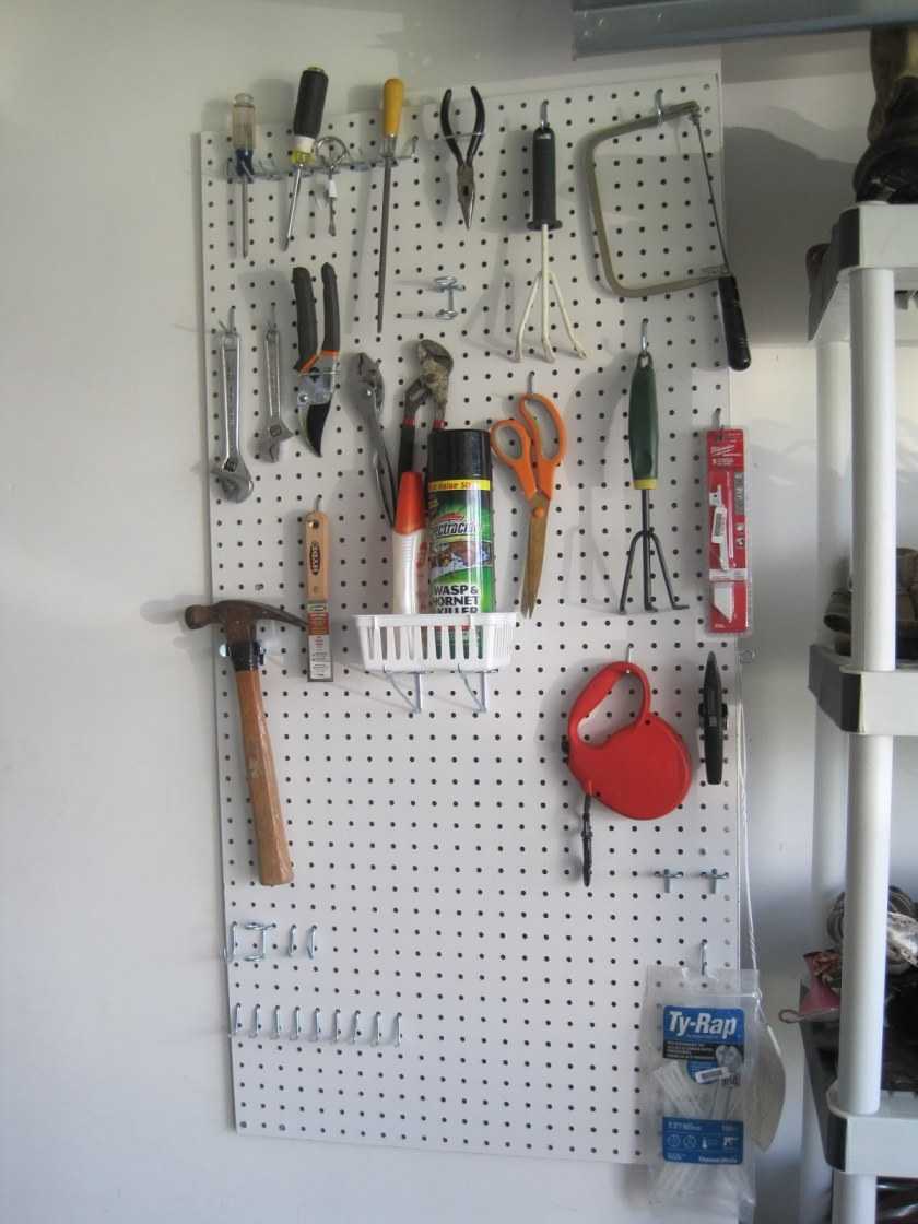 Наиболее рациональным способом хранения в гараже инструмента считается применение свободного места на стенах.