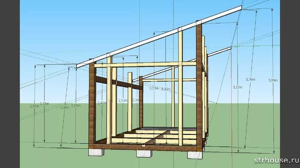 Если крыша планируется для дачного дома или сарая, то достаточно переднюю стену постройки сделать несколько выше задней на определенную высоту, чтобы вывести угол ската.
