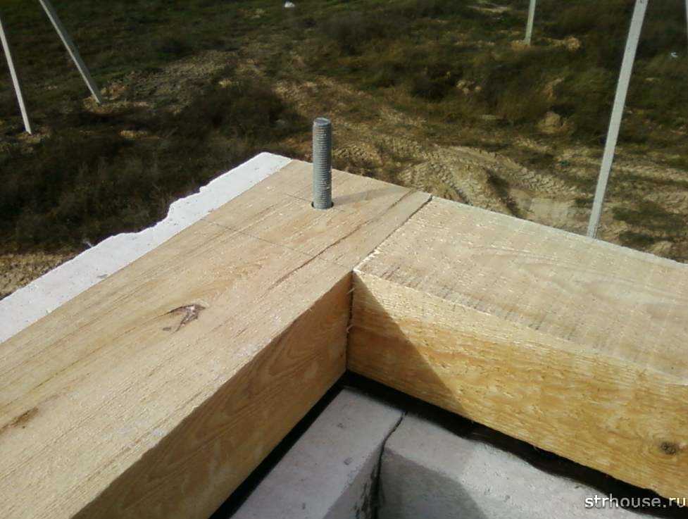 Если баня выстроена из блочного материала (кирпича или ячеистых бетонов), то опорой будет служить мауэрлат – это особый обвязочный брус из дерева, который крепится к основному материалу стен прочными металлическими шпильками и служит, в свою очередь, для крепления стропил.
