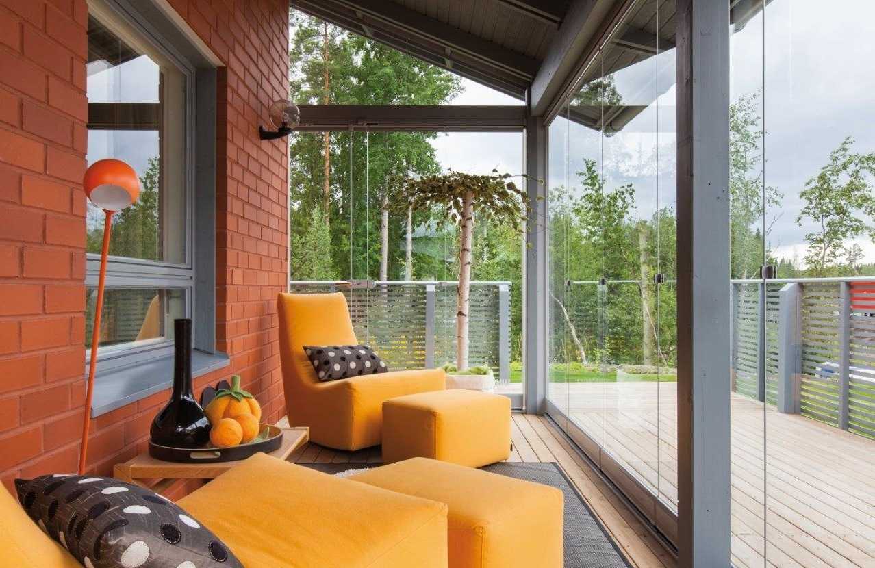 Безрамное остекление веранды и террасы хорошо подходит для загородных домов и коттеджей. Дополнительно для создания такого вида остекления используются рельсы в нижней и верхней части веранды, за которые крепятся стеклянные полотна. В процессе эксплуатации их можно сдвигать или разбирать.