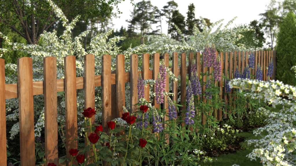 - Светопропускная способность. Ограды для палисадников не должны затенять растения.