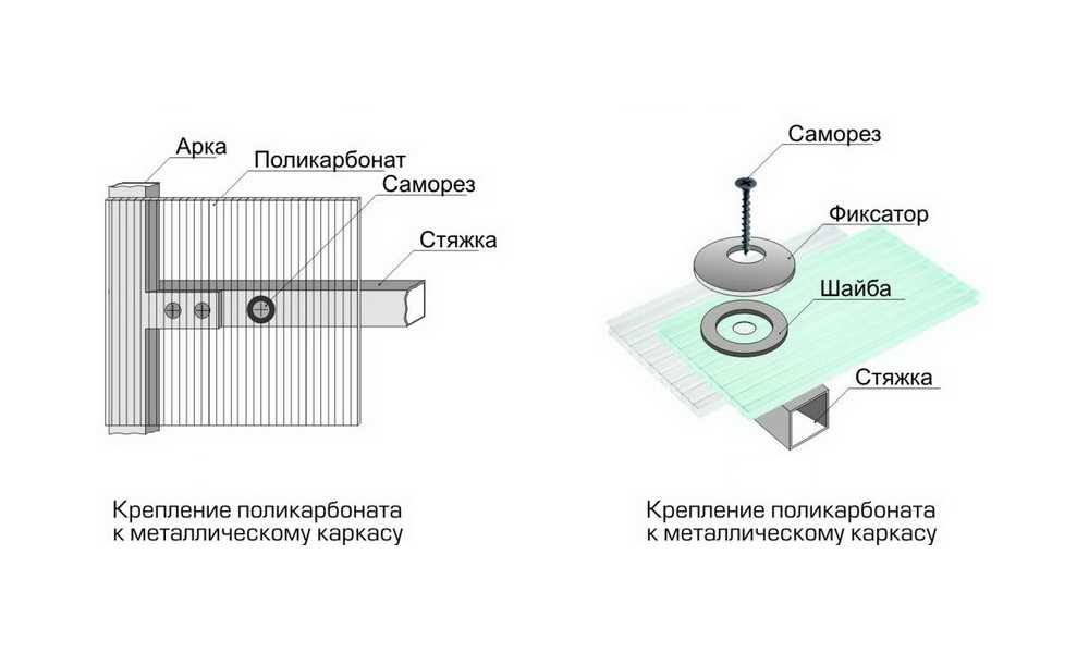 Схема крепления листов поликарбоната к металлическому каркасу