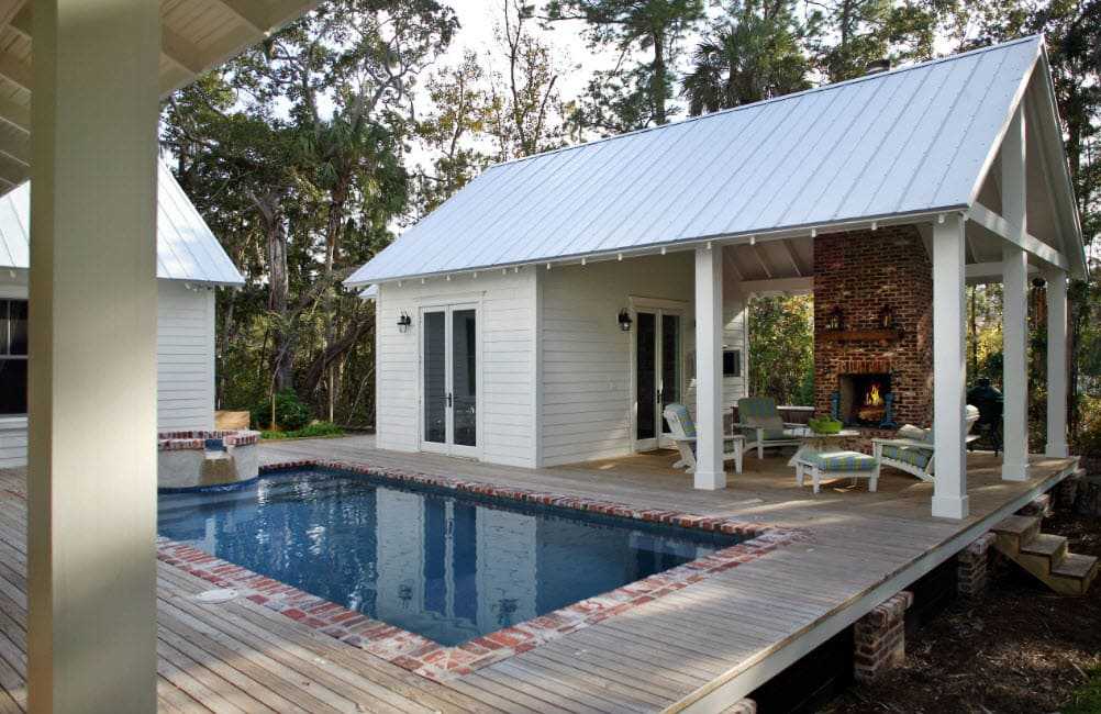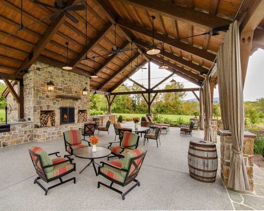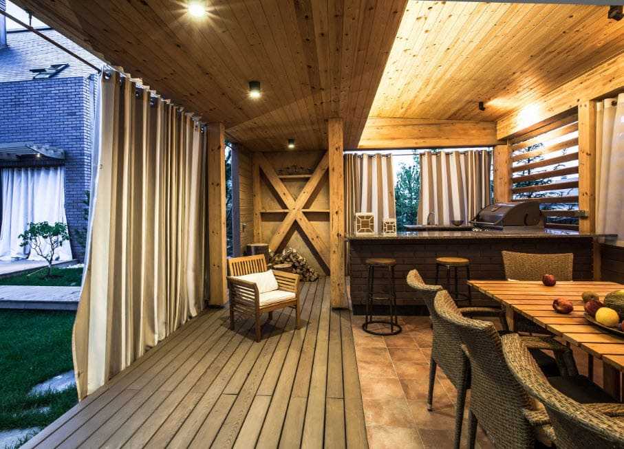 Также важно, чтобы напольное покрытие открытой беседки имело минимальный угол наклона, для обеспечения естественного стока воды в сторону, противоположную от печи. Благодаря этому осадки быстро и беспрепятственно будут стекать с напольного покрытия, не повреждая его