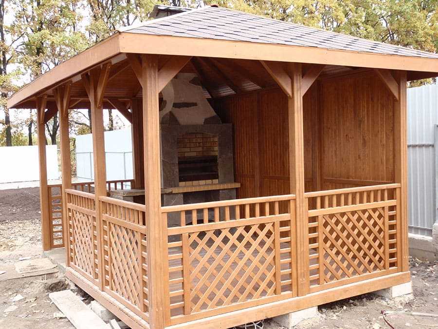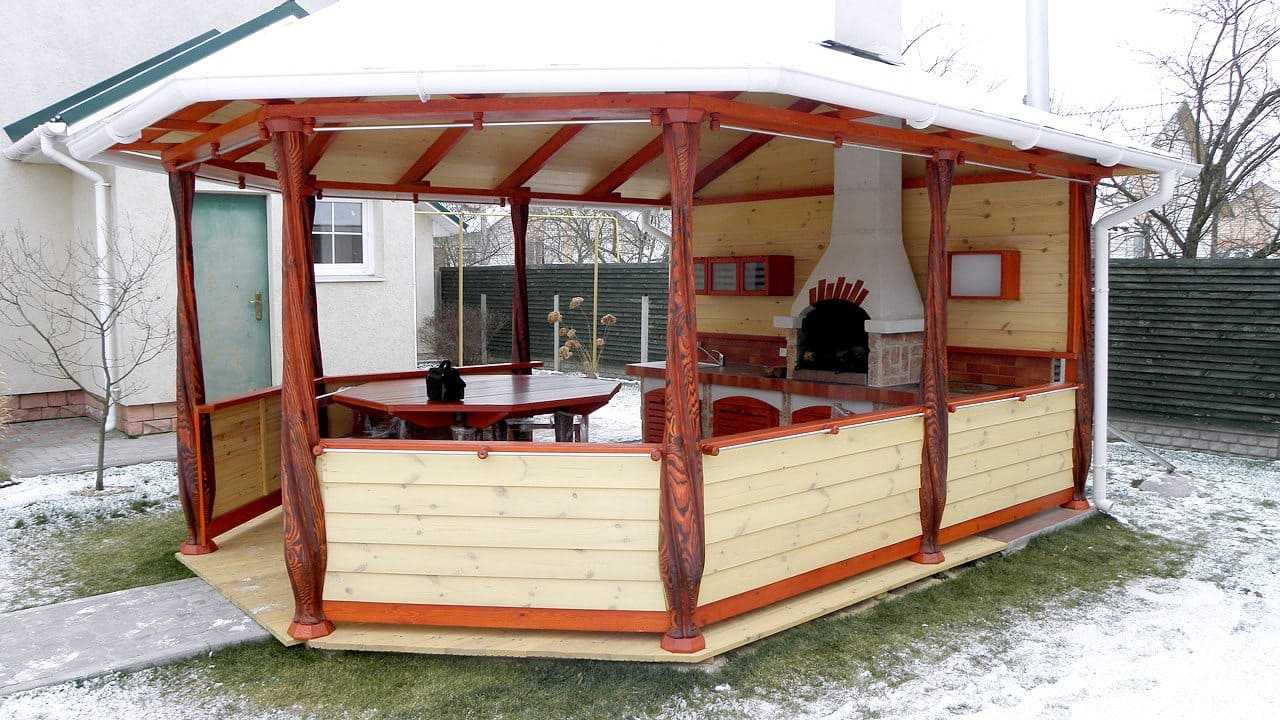 Лучше продумать проект беседки со встроенной печкой, так как деревянное строение может не выдержать громоздкую конструкцию.