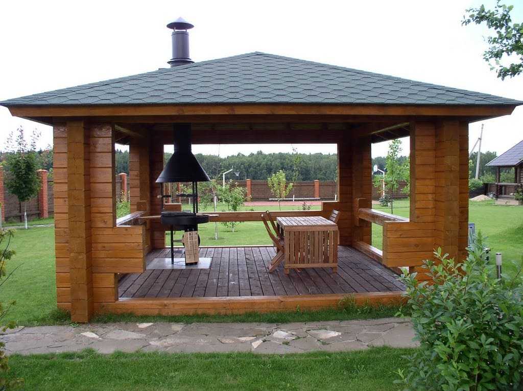 Высота дымохода подбирается соответственно величине беседки и должна превосходит на 1 м ее кровлю, чтобы не «угощать» собравшихся дымом.