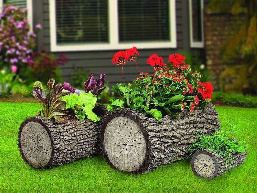 Декоративные горшки и кашпо, выполненные в современном направлении, бочонки и даже пень (если дом в деревенском стиле), придадут колорит и дополнят дизайн участка. Рядом можно построить простой, незамысловатый фонтанчик, небольшой искусственный водоем.