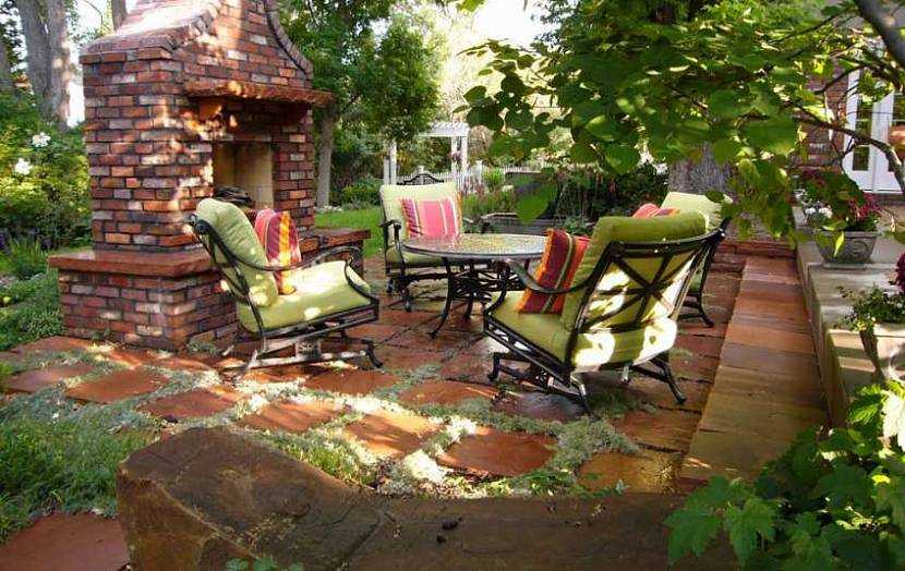 Средиземноморский стиль в дизайне сада с мощением терракотойИсточник br.pinterest.com