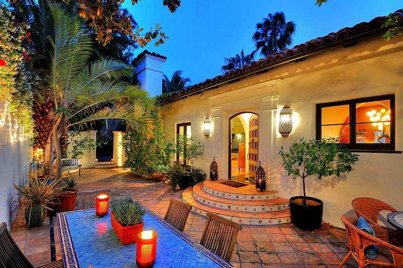 Если ваш участок довольно маленький, обратите внимание на такие стили, как минимализм, средиземноморский и современный. Они очень хорошо подходят для организации пространства и в первую очередь рассчитаны на мощение (камнем, деревом, термодеревом или древесно-полимерным композитом) основной площади, чем на пейзажные клумбы, что будет очень кстати.. Средиземноморский стиль в дизайне сада с мощением терракотойИсточник br.pinterest.com