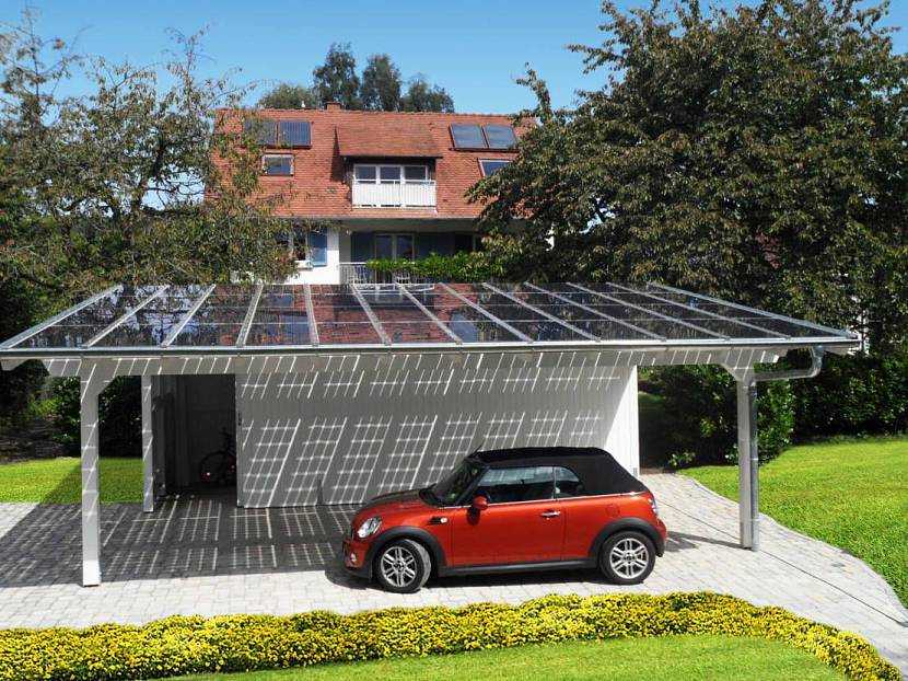 Удобный навес для автомобиля с хоз. постройкойИсточник solarcarporte.de