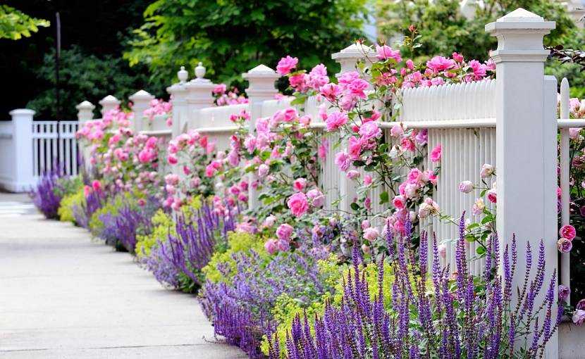 Сад с американским заборчиком и миксбордером на парадной клумбеИсточник websad.ru