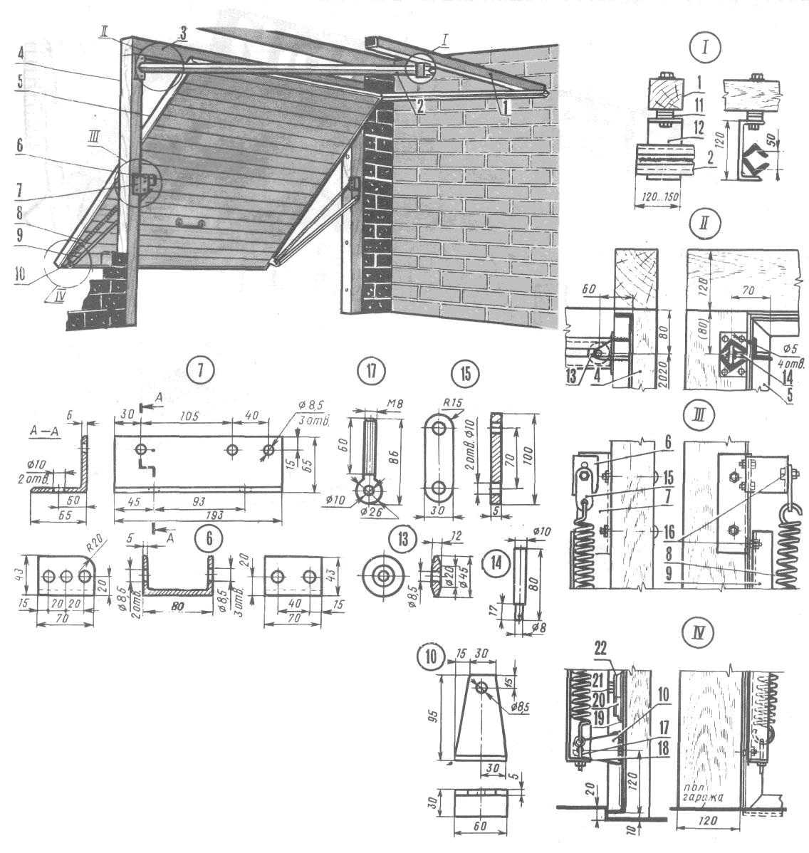 Определяясь с конструктивным исполнением подъёмного ограждения, используйте проверенное техническое решение — рычажный механизм с шарнирным креплением.
