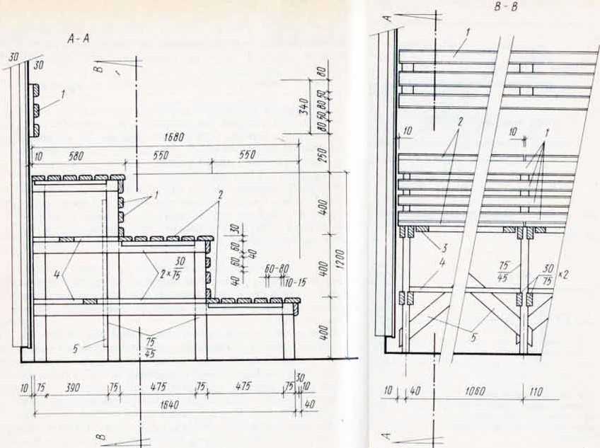 После того как будет выбран тип банного полка, можно приступать к построению чертежа будущей конструкции. Он поможет сделать действительно качественное и практичное изделие своими руками.