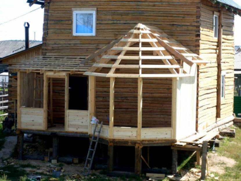Процесс возведения деревянной пристройки к домуИсточник prakard.com