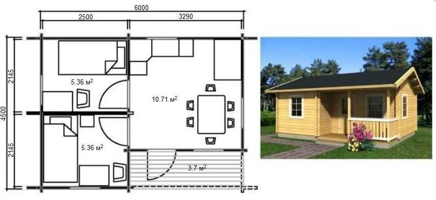 - Размещение достаточного количества комнат: кухня, спальня, гостиная, терраса.