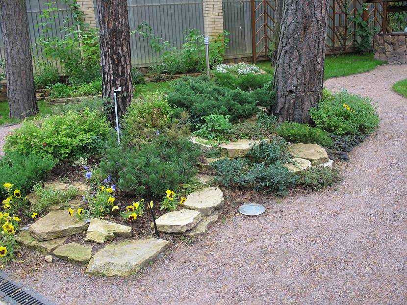 Большая часть низкорослых растений любят солнечный свет, поэтому, если в каменистом садике их большинство, то композицию размещают в хорошо освещаемом месте.