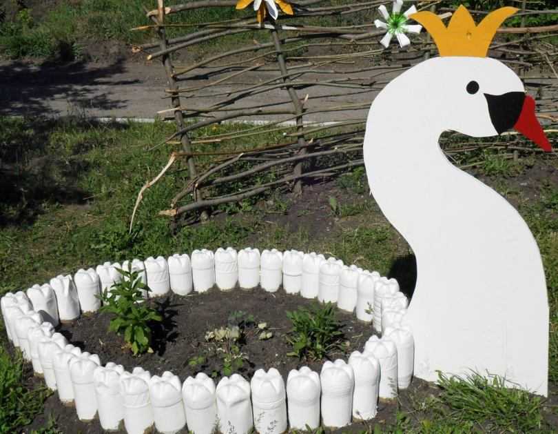 Как сделать лебедя-клумбу из пластиковых бутылок