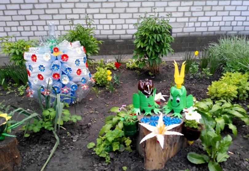 Как обустроить оригинальную клумбу из пластиковых бутылок