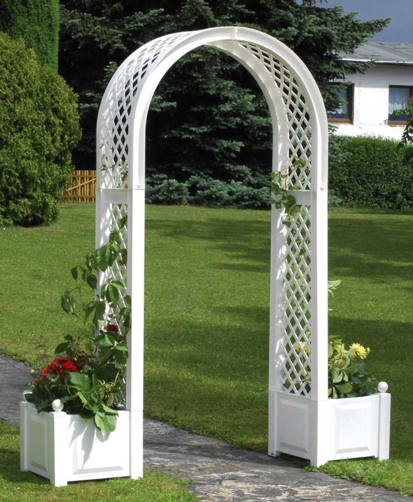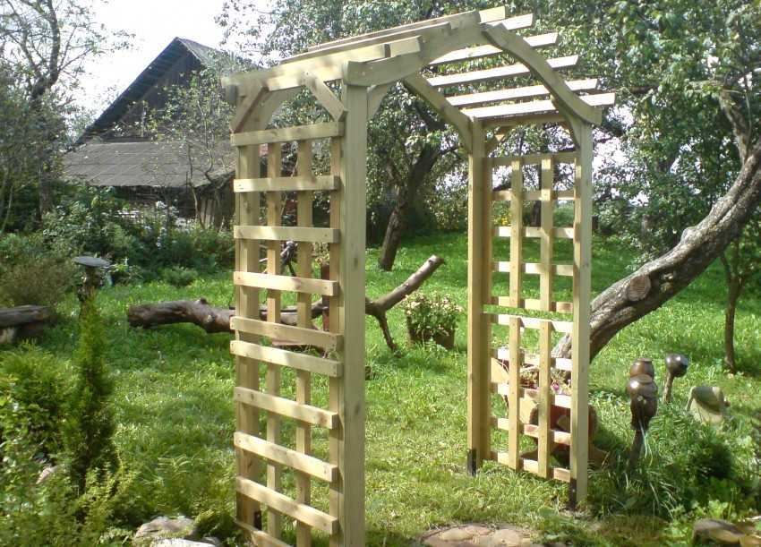 - По виду каркасов — арки, шпалеры — вертикальные решетки, перголы — скрепленные вместе элементы, создающие объемную конструкцию, остальные сложные конструкции.