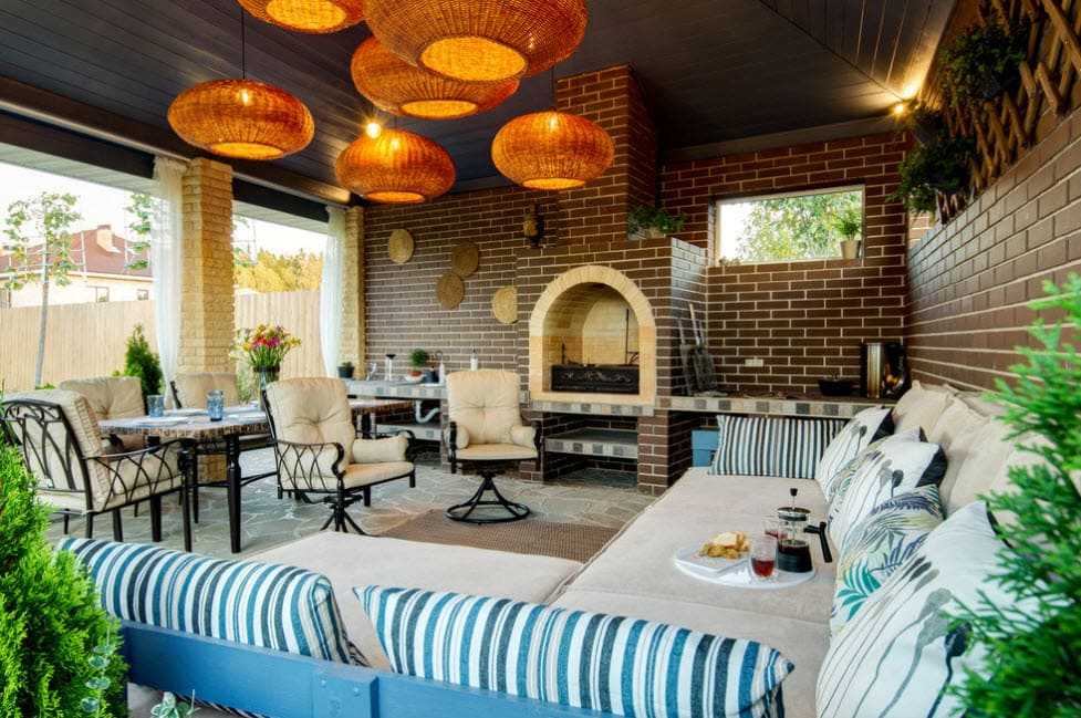 - универсальность и многофункциональность – беседки из кирпича могут служить летними и зимними кухнями, их можно оснастить диваном или спальной мебелью для ночного отдыха.