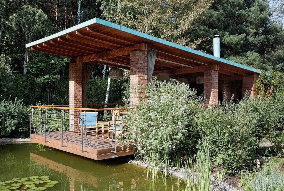 Деревянные и металлические варианты беседок с мангалом не требуют такого капитального фундамента, как каменные и кирпичные.