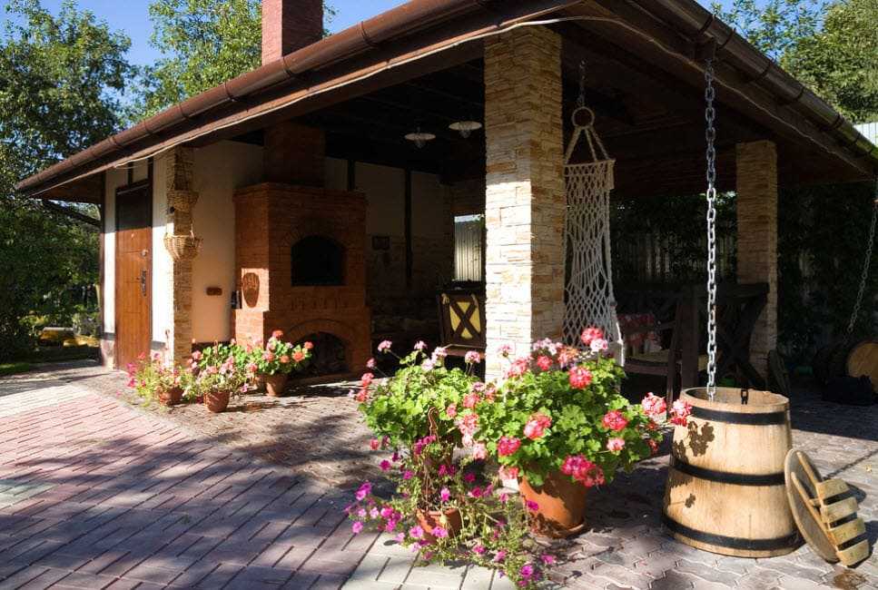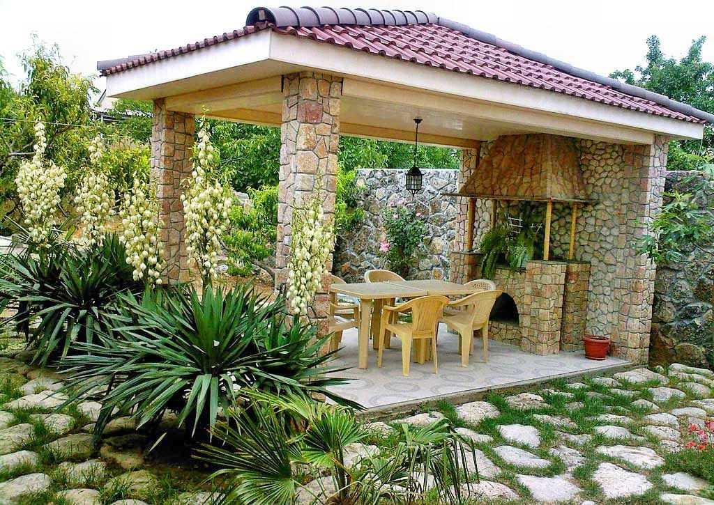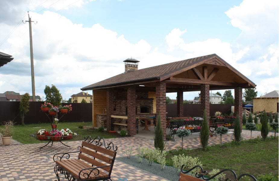 Наиболее популярен комбинированный вариант садовой беседки-барбекю:
