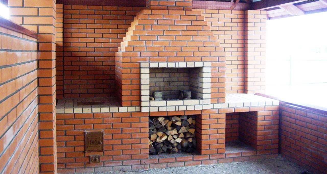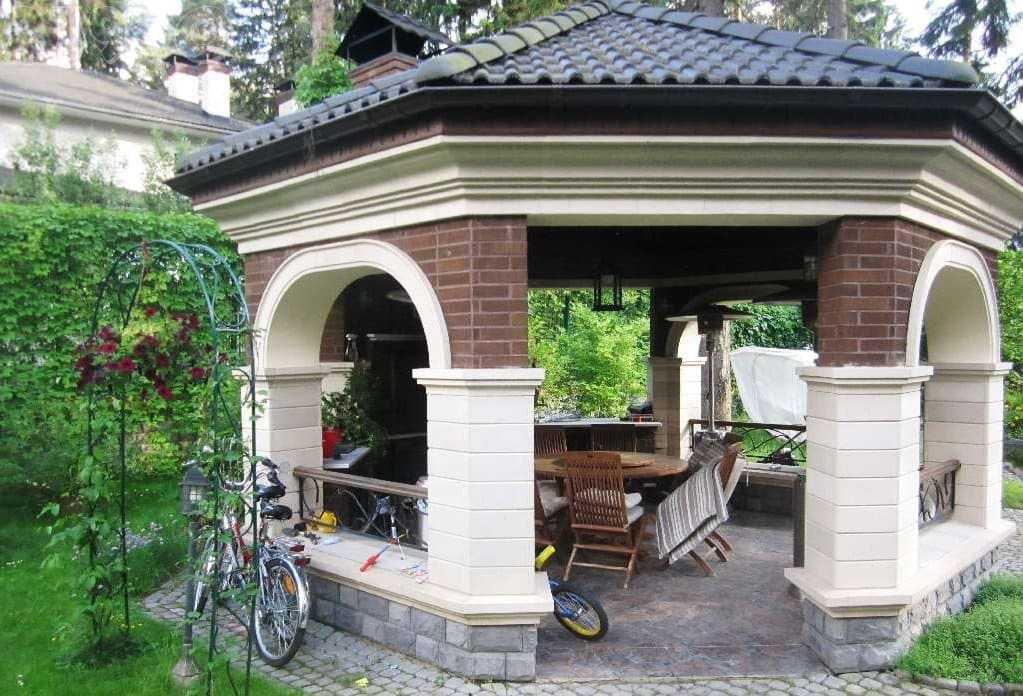 Кирпичная беседка с мангалом имеет следующие достоинства: