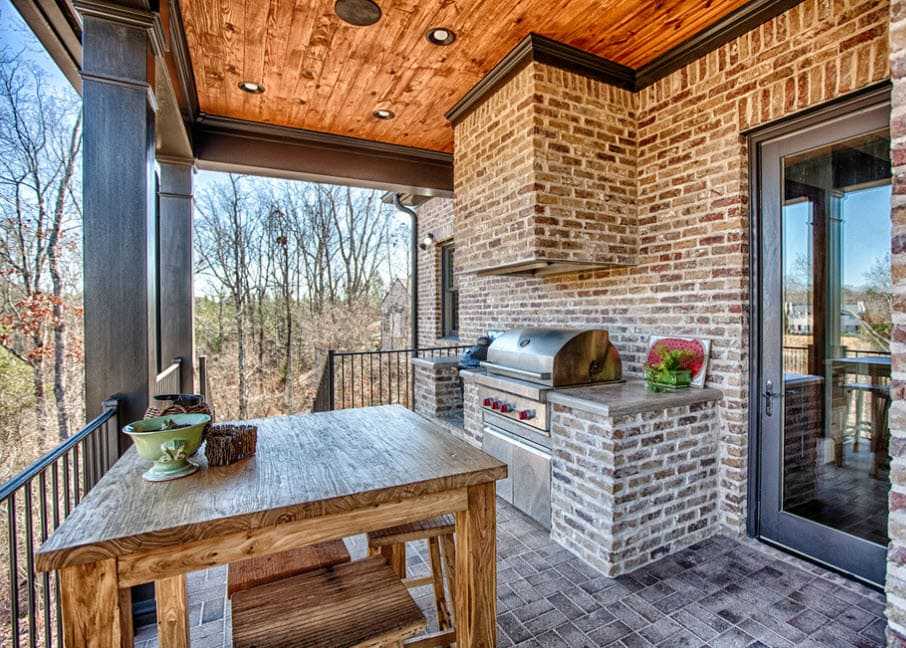 - стены в непосредственной близости от зоны готовки выкладывают из кирпича;