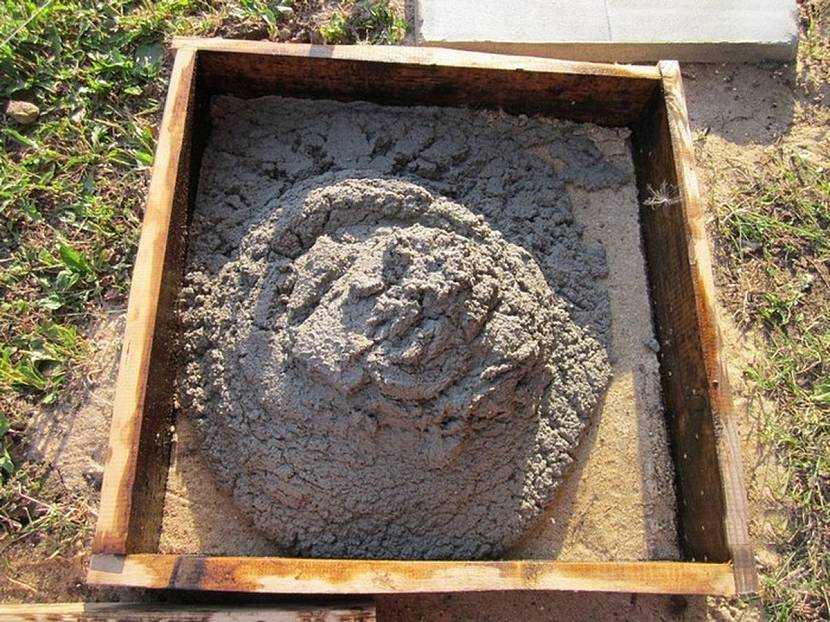 В приготовленную основу переносится изображение с наброска. Во избежание разрушения всей конструкции, рисунок следует расположить в означенном квадрате, таким образом, чтобы он по всем 4-м сторонам ограничивался бортиками, для создания прочности мозаики. Обычно для этого используются бордюры, либо опалубка из досок, которые затем снимаются после затвердевания каждого элемента мозаики.