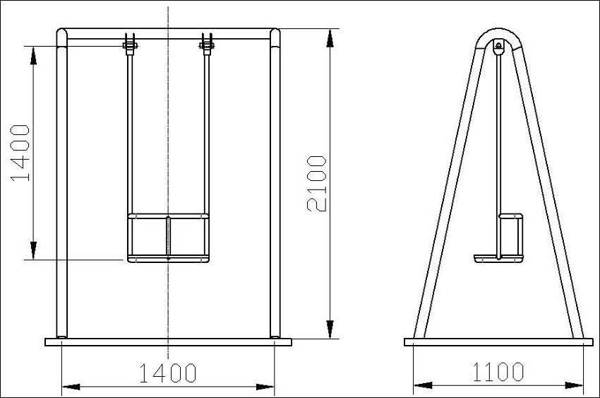 Чертеж деревянных качелей оптимального размера для одного человека
