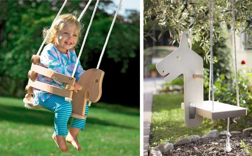 Оригинальные детские качели из дерева в виде лошадки