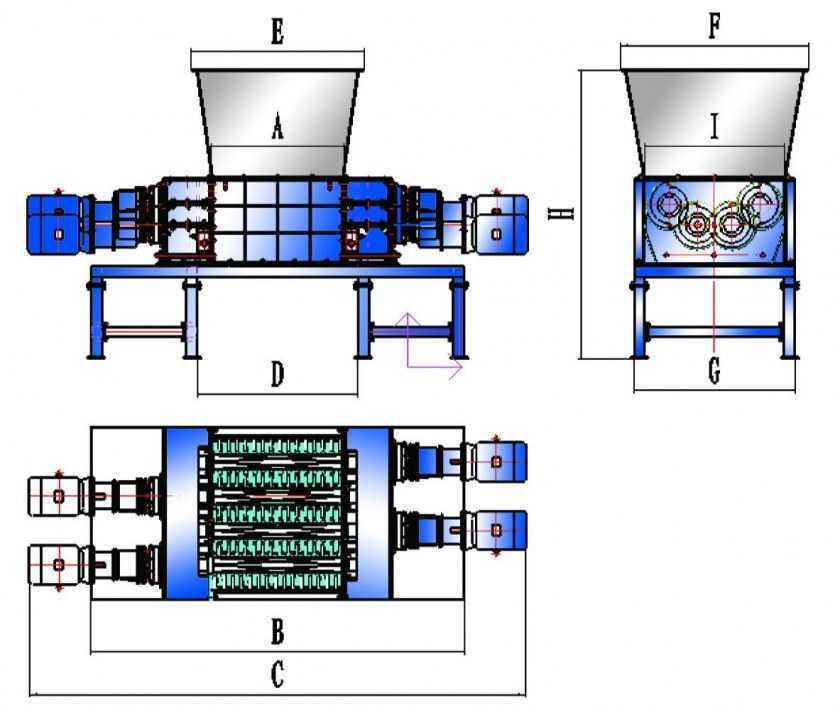 Малопроизводительные машины с небольшой рабочей камерой выполняются с единым приводом, зубцы на роторных ножах служат для захвата и дробления отходов.