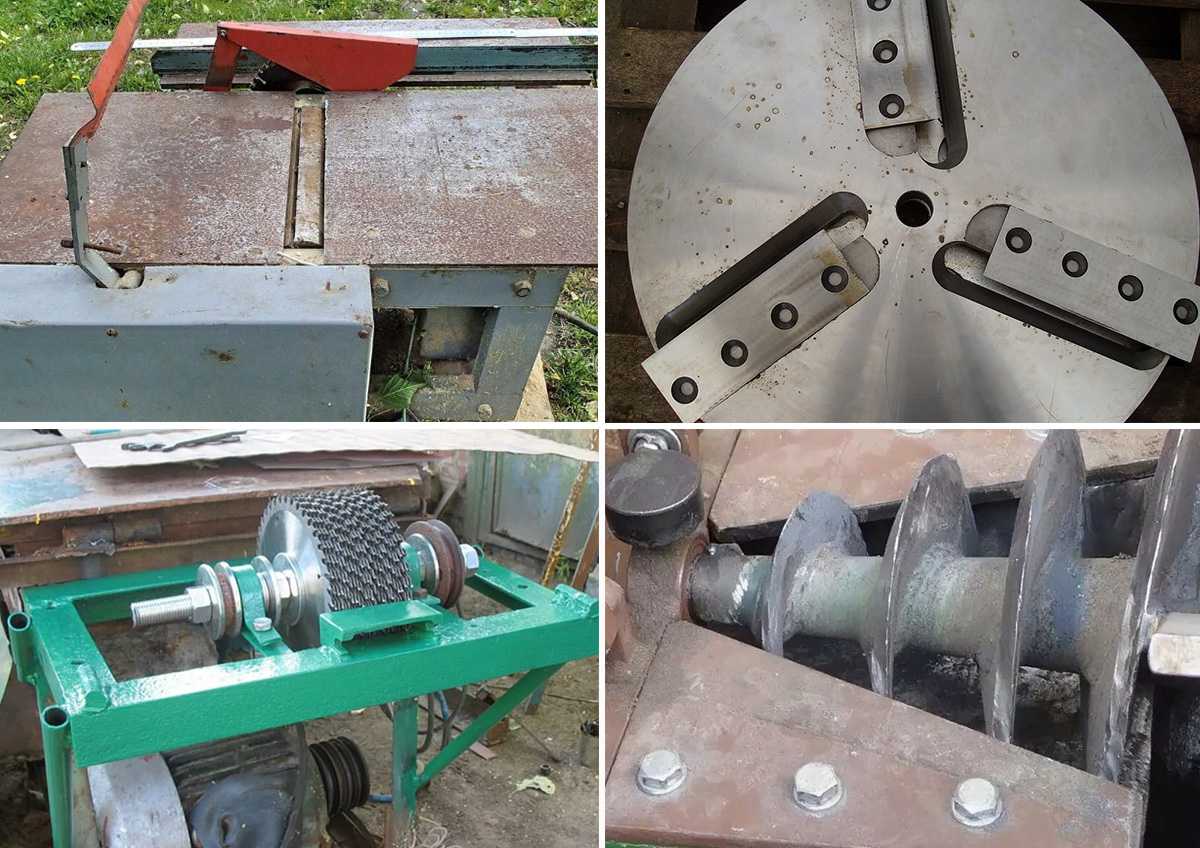 При самостоятельной сборке измельчителя отдается предпочтение ножевой системе или наборной из дисковых пил. Можно выполнить двухвалковую конструкцию, при которой два-три ножа устанавливаются на массивном диске и вращаются друг другу навстречу.