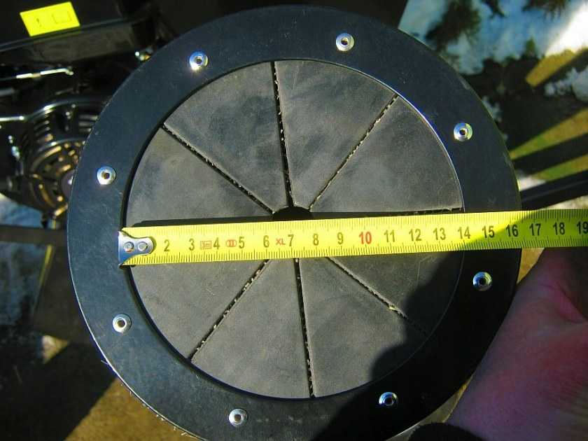 Наиболее часто изготавливается дисковый вариант на основе пил. Необходимо приобрести полтора десятка полотен из твёрдой стали с насадками для зубьев. Технология самостоятельного изготовления: