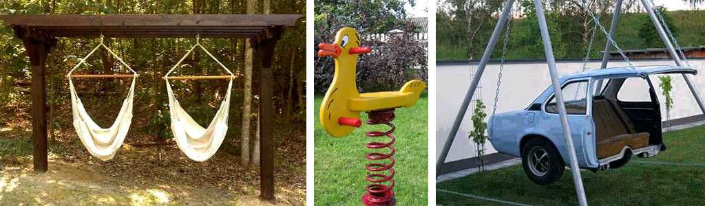 На пружине – такие качели подходят для совсем юных членов семьи. Детям особенно нравятся яркие модели с каркасом в виде машинки или мотоцикла