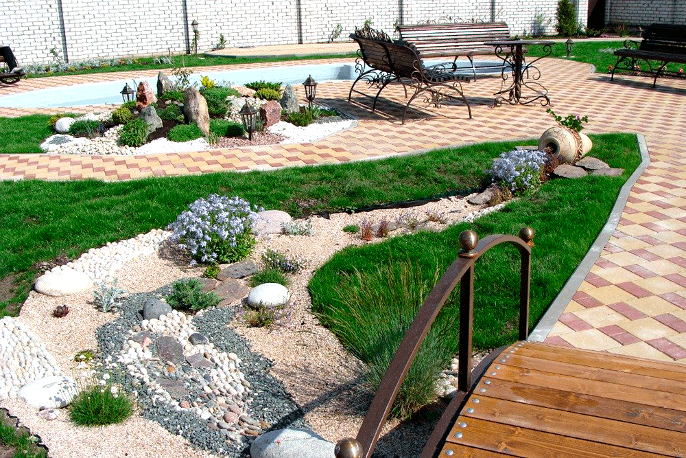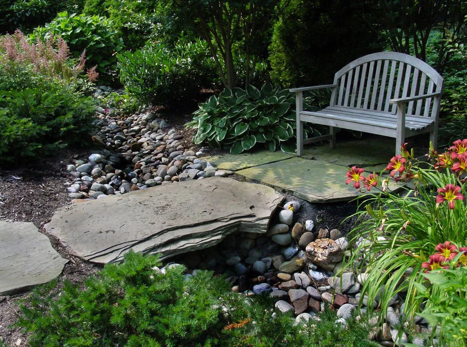 - Сухой ручей гармонирует с любым ландшафтным дизайном.