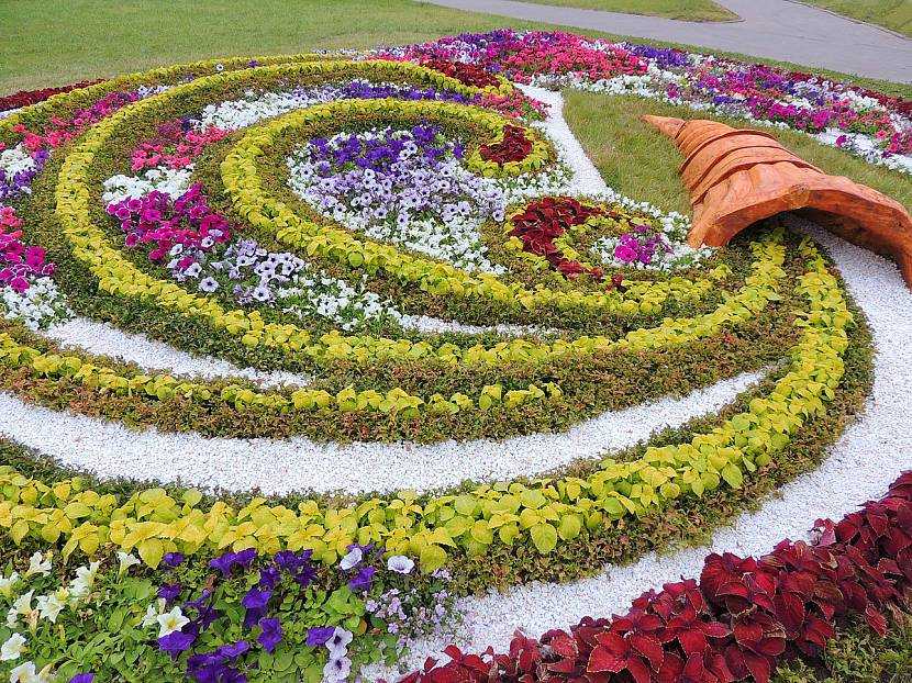 При создании композиции можно использовать для организации «воды» растения различной высоты, создавая подобие волн. Но если опыт организации клумб небольшой, лучше отдать предпочтение традиционному виду ручья из цветов одного вида.