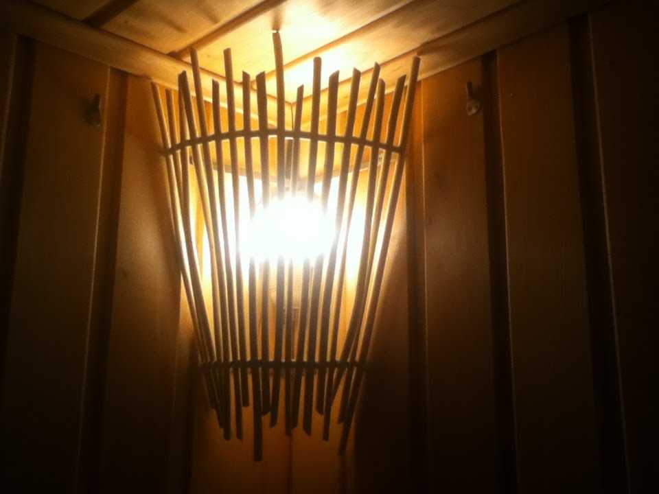 Обратите внимание на фото светильников в баню, смонтированных своими руками – если подходить к работе со знанием дела, самодельное освещение будет выглядеть не хуже профессионального
