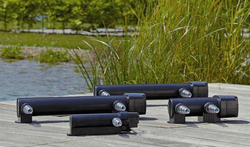 Существенно облегчает уход за прудом УФ-стерилизация воды. Проходя через УФ-стерилизатор, установленный после всех фильтров, прудовая вода избавляется от 99% вирусов и болезнетворных бактерий. При этом полезная микрофлора остается невредимой, поскольку обитает на субстратах, а не в толще воды.