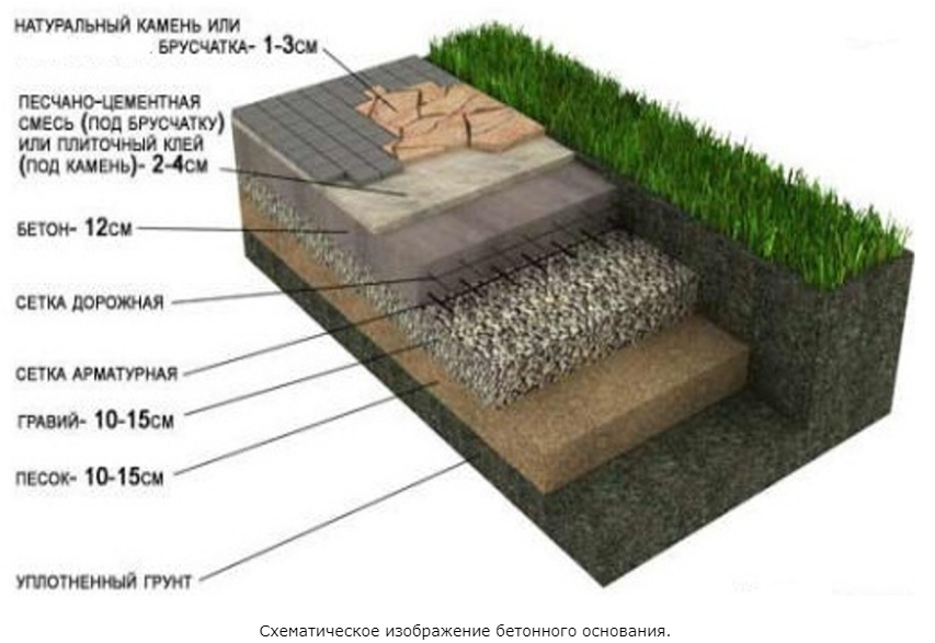 Качество несущего слоя в случае укладки плит на бетон очень важно из-за использования жесткой фиксации. При неудачном исполнении сооружение быстро потрескается
