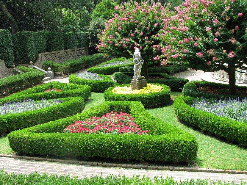 - цветники и клумбы, живые изгороди;