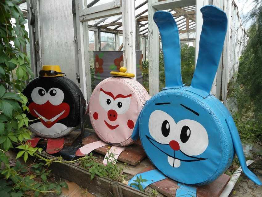 Креативные самоделки из старой резины сейчас широко распространены среди огородников. Оформление детских площадок разными фигурками зверей, песочницами, качелями из автомобильных покрышек, дорожками между грядок из резины, искусственными водоемами и, наконец, различное украшение цветников – все это очень оригинально смотрится на частных территориях.