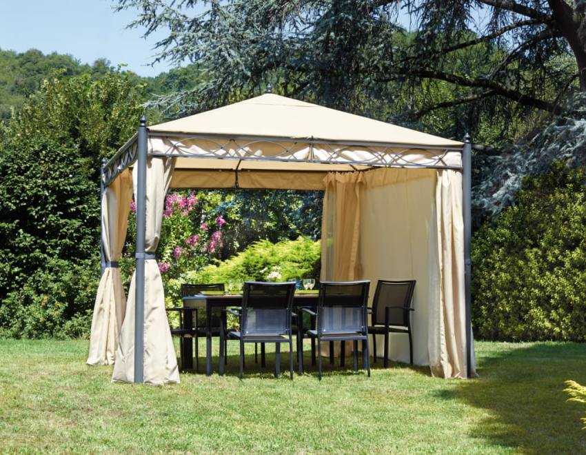 Текстильные стены беседки имеют много преимуществ перед стеклянными конструкциями