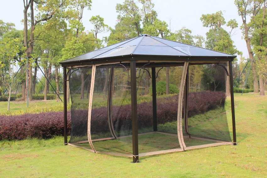 - Прозрачность изделия и возможность видеть происходящее вокруг беседки;