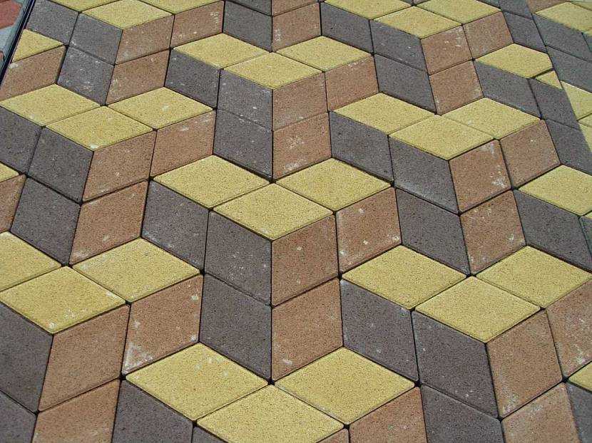 Плиточные ромбы помогут создать объемный рисунок на тротуареИсточник pinterest.ru
