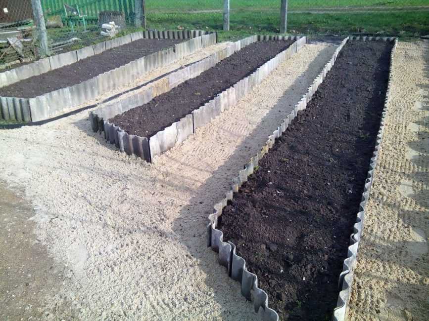 Грядки без ребер жесткости – самые недорогие, но могут не выдержать нагрузку даже при небольшой высоте бортика
